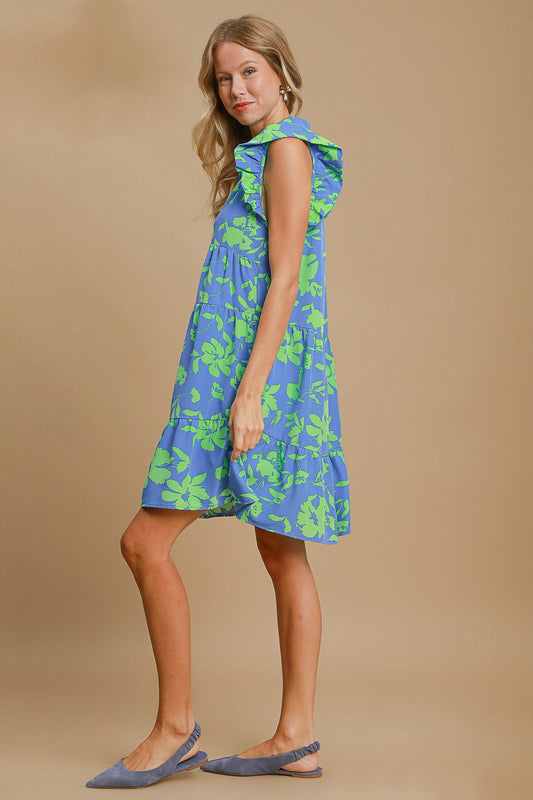Umgee Full Size Floral Print Ruffle Cap Sleeve Tiered Dress Plus Size