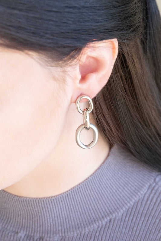 GRADUATE THREE GLASS BEAD DISKS DROP EARRINGS