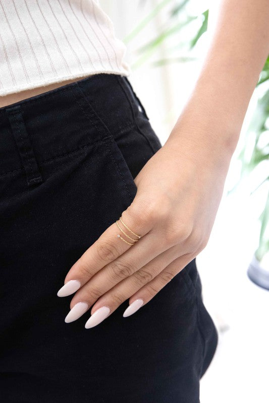 925 Sterling Silver Inlaid Zircon Bypass Ring